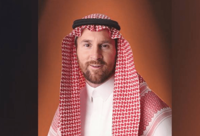 Imej Messi yang memakai pakaian tradisional Arab menarik perhatian.